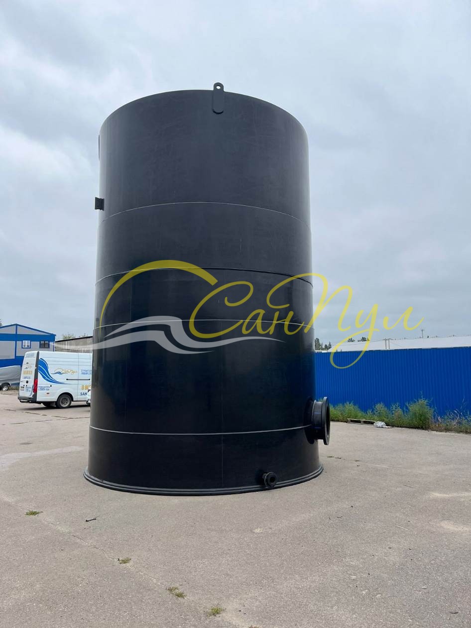 Для того же заказчика изготовлена и емкость для хранения сточных вод объемом 75 м3 (вертикальный цилиндр диаметром 4 м и высотой 6 м).